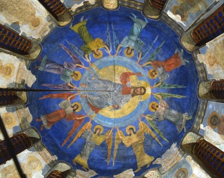 Іван Селезньов. Вознесіння Ісуса Христа. Олія. ХІХ ст. Склепіння центральної бані, Кирилівська церква.