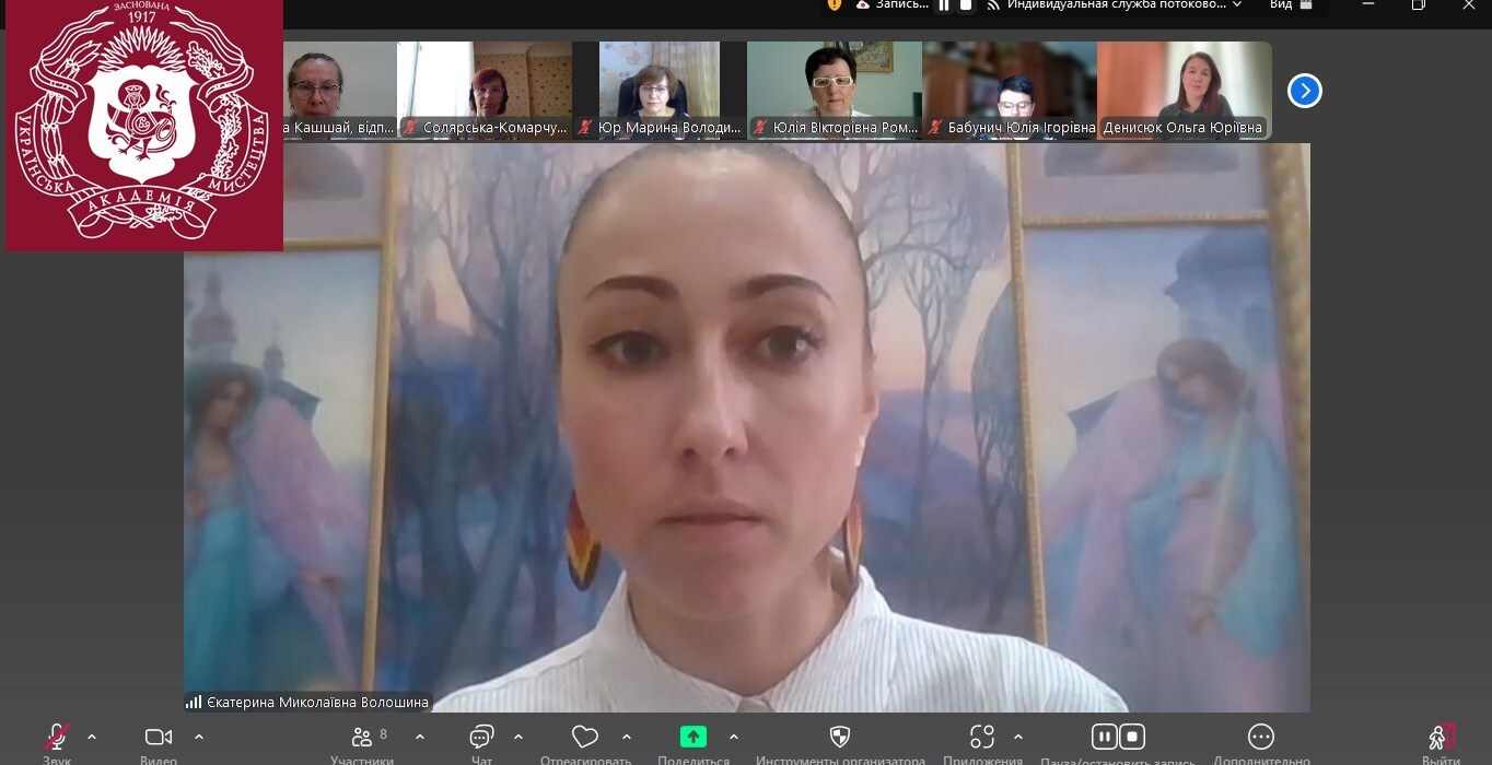 Катерина Волошина – здобувач ступеня доктора філософії за спеціальністю 023 «Образотворче мистецтво, декоративне мистецтво, реставрація» галузі знань 02 Культура і мистецтво, яка здобуває освіту в аспірантурі НАОМА на кафедрі теорії та історії мистецтва на освітньо-науковій програмі “Теорія та історія мистецтва”. Бажаємо подальших наукових успіхів!