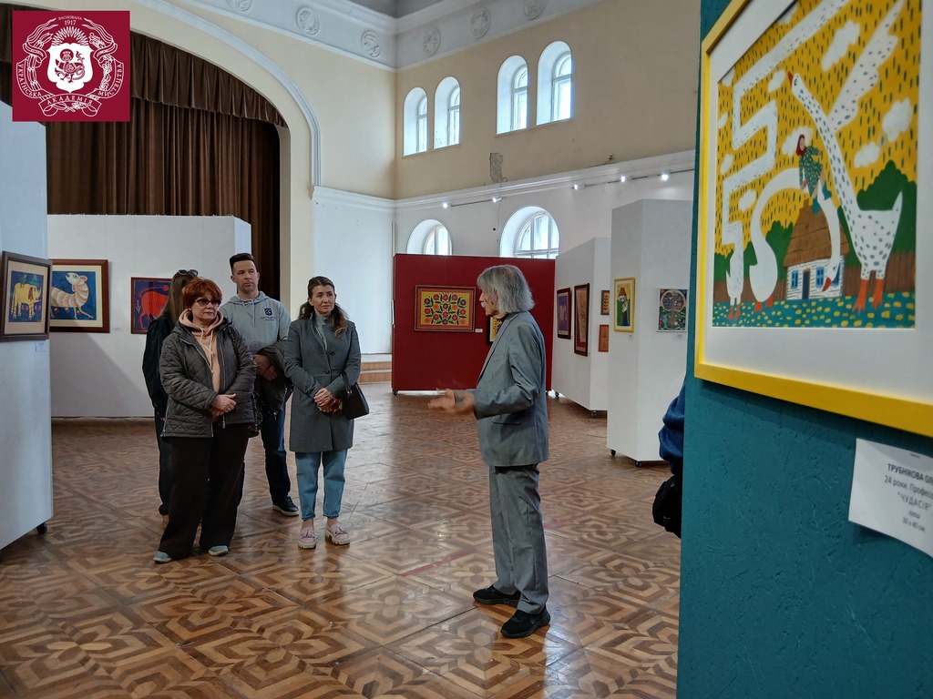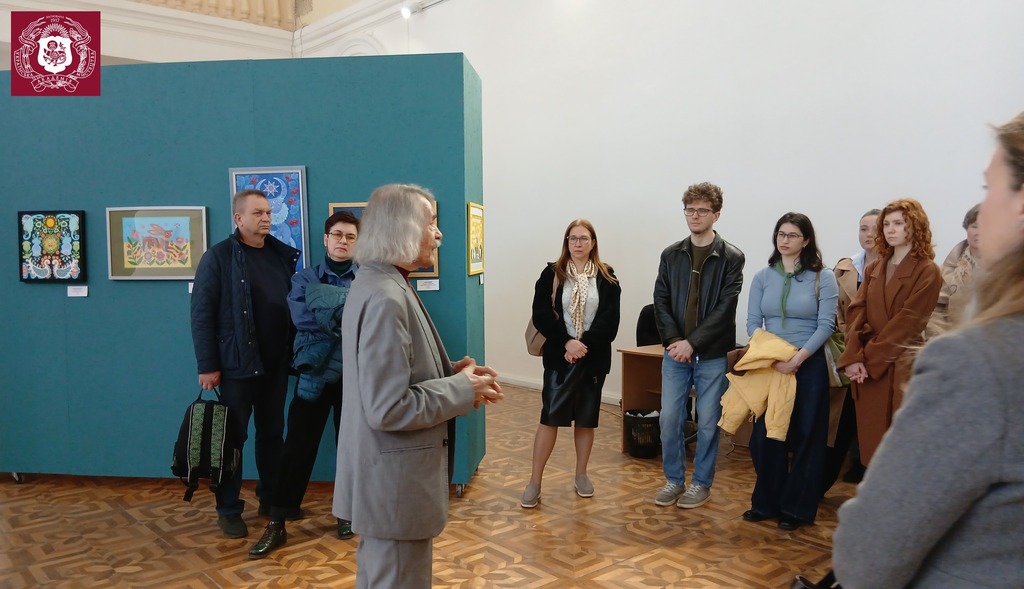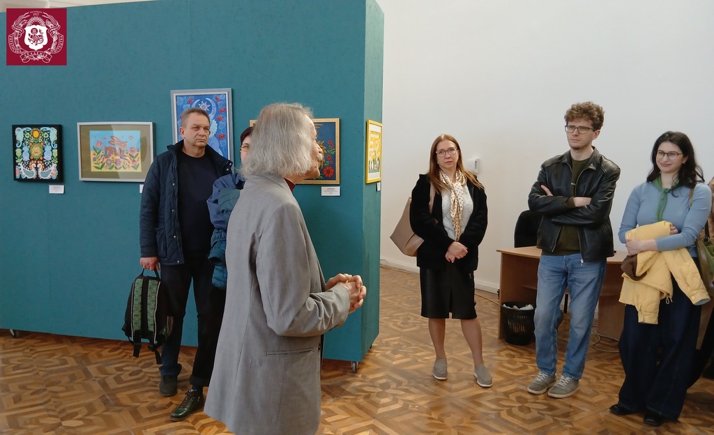 ACADEMICIAN OF THE NATIONAL ACADEMY OF ARTS OF UKRAINE, ASSOCIATE PROFESSOR VASYL PEREVALSKYI CONDUCTED A GUIDED TOUR OF THE EXHIBITION OF WORKS BY MARIIA PRYMACHENKO AND FINALISTS OF THE ALL-UKRAINIAN FOLK ART COMPETITION “POLISKA KAZKA”
