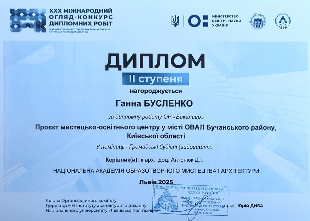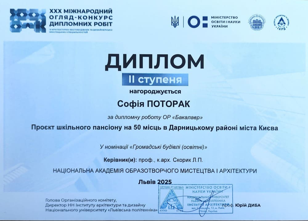 Факультет архітектури Національної академії образотворчого мистецтва і архітектури (НАОМА) гідно представив свої дипломні проєкти, отримавши 4 дипломи І ступеня та 2 дипломи ІІ ступеня за результатами конкурсу.