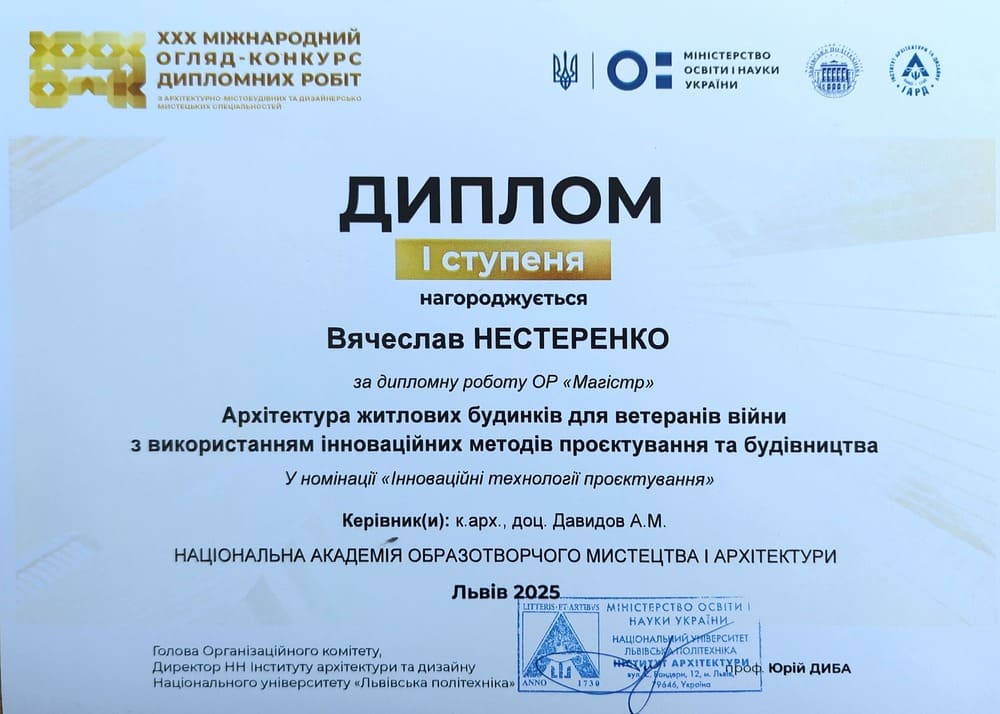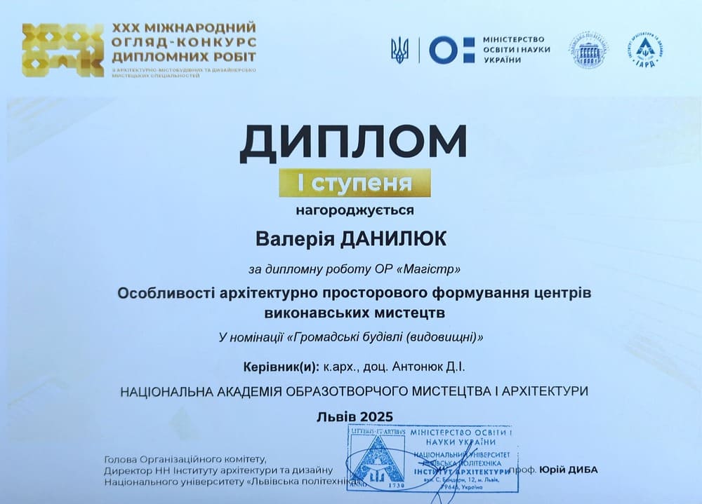 З 6 по 10 жовтня 2025 року у стінах Національного університету «Львівська політехніка» відбувся XXX Міжнародний огляд-конкурс дипломних проєктів архітектурних і дизайнерських спеціальностей закладів вищої освіти України та зарубіжжя. Захід традиційно об’єднує найкращі дипломні проєкти молодих архітекторів і дизайнерів, демонструючи високий рівень професійної підготовки та креативного мислення нової генерації фахівців.
