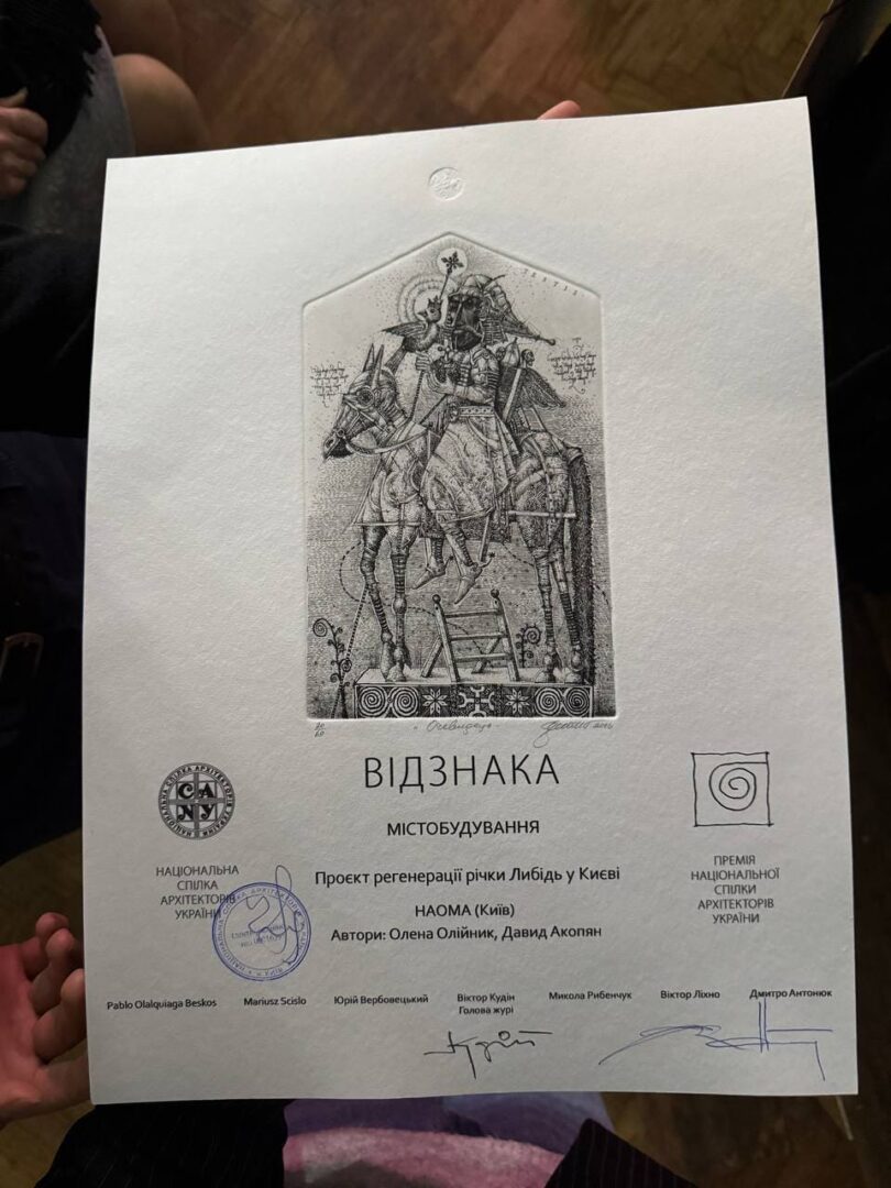 Нагодоження переможців конкурсу відбулося 26 лютого 2026 року в Будинку Архітектора. Проєкт відновлення річки Либідь у Києві, що виконувалась протягом восьми місяців Національною академією образотворчого мистецтва і архітектури під керівництвом проф. Олійник О.П (автори – Олійник О.П., Давидов А.М., Акопян Д.К., за участю студентів 3 курсу) та під патронатом Національної спілки архітекторів України було високо оцінено та відзначено серед 120 конкурсних робіт.