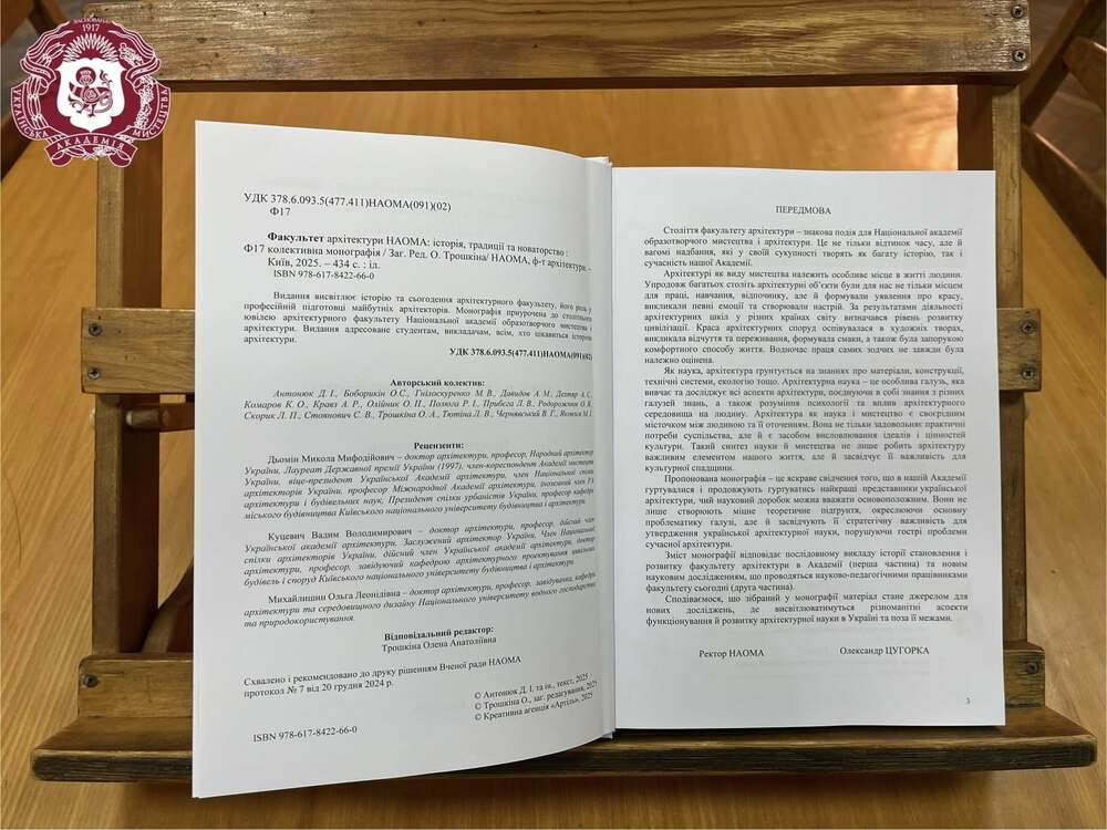 До відзначення 100-річчя Факультету архітектури НАОМА видана Колективна монографія “Факультет архітектури НАОМА: Історія, традиції та новаторство”.