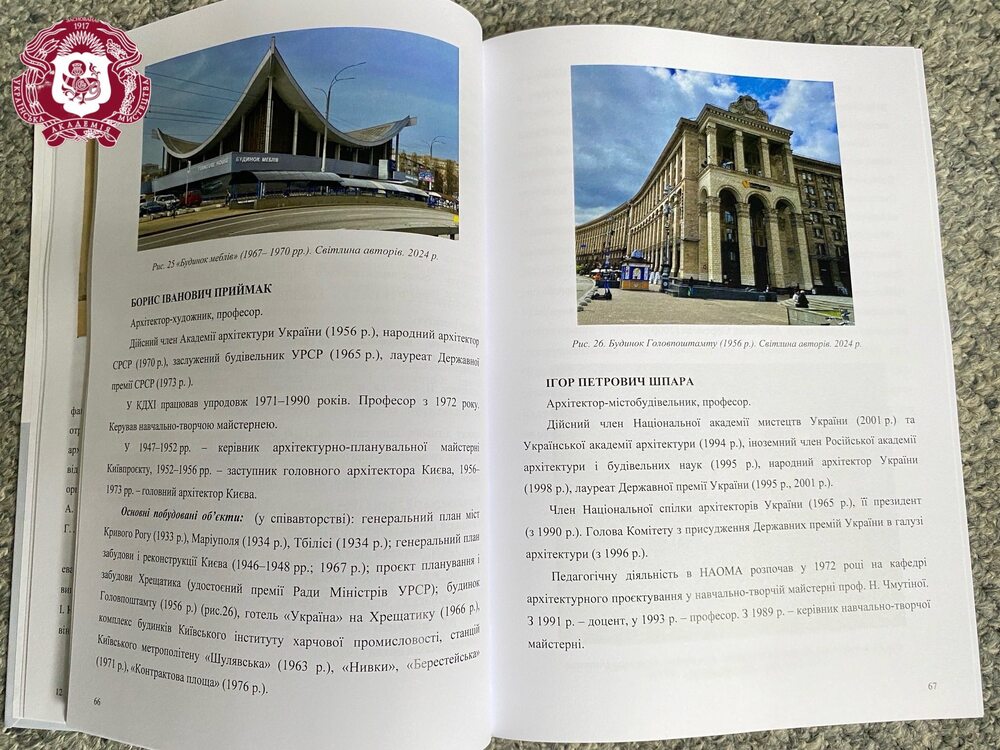 Монографія приурочена до столітнього ювілею архітектурного факультету Національної академії образотворчого мистецтва і архітектури. Видання адресоване студентам, викладачам, всім, хто цікавиться історією архітектури.