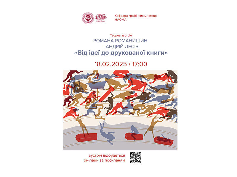Маючи за плечима великий досвід в роботі з книжковими проектами та ілюстраціями, що видані друком в Україні та багатьох міжнародних видавництвах, Романа і Андрій поділяться досвідом із студентами НАОМА, розкажуть про важливі аспекти в роботі на мистецькими концепціями та можливостями їх реалізації в книзі. Покажуть на прикладі власних проектів, як сучасна українська графіка може займати провідні місця на світових книжкових фестивалях та конкурсах.