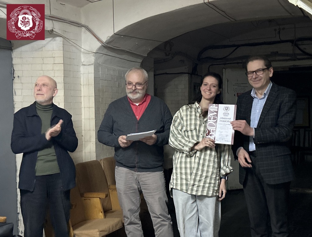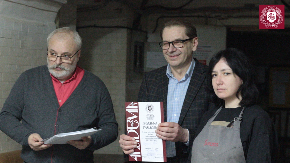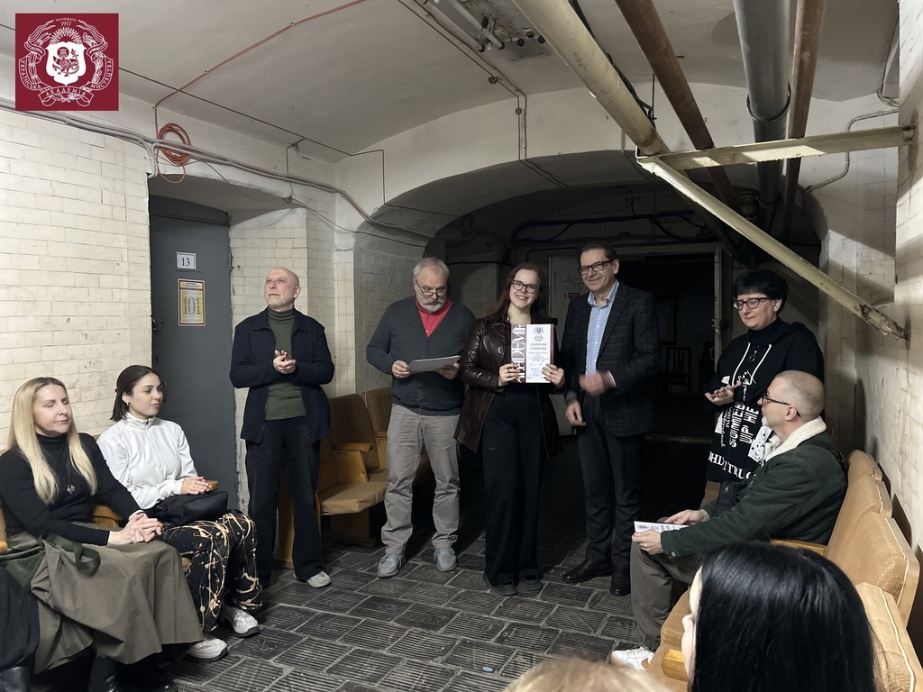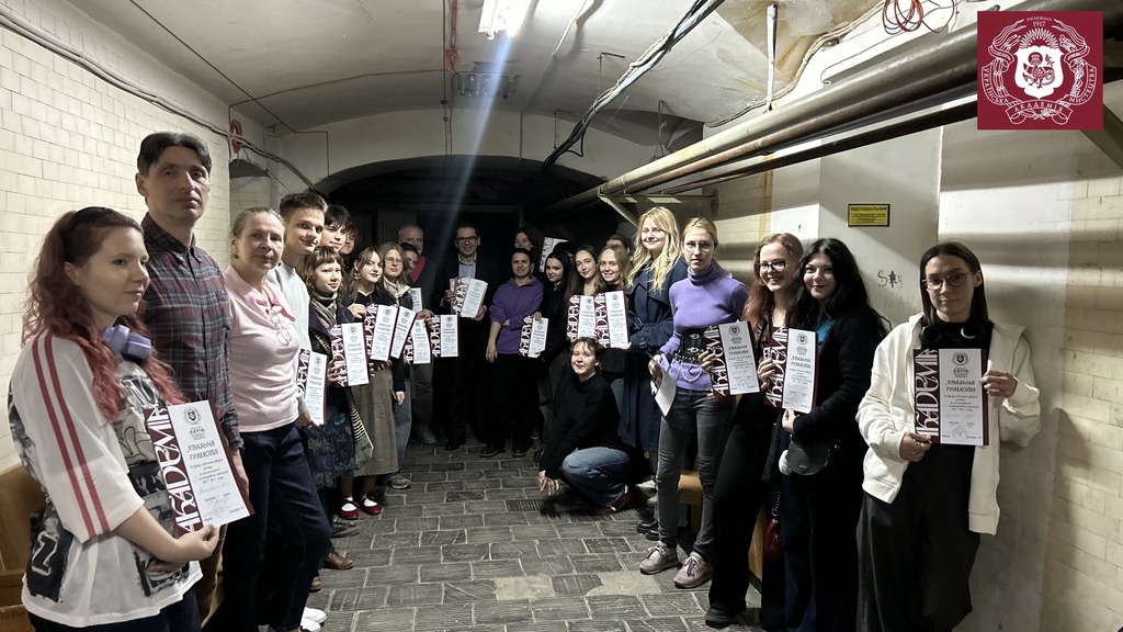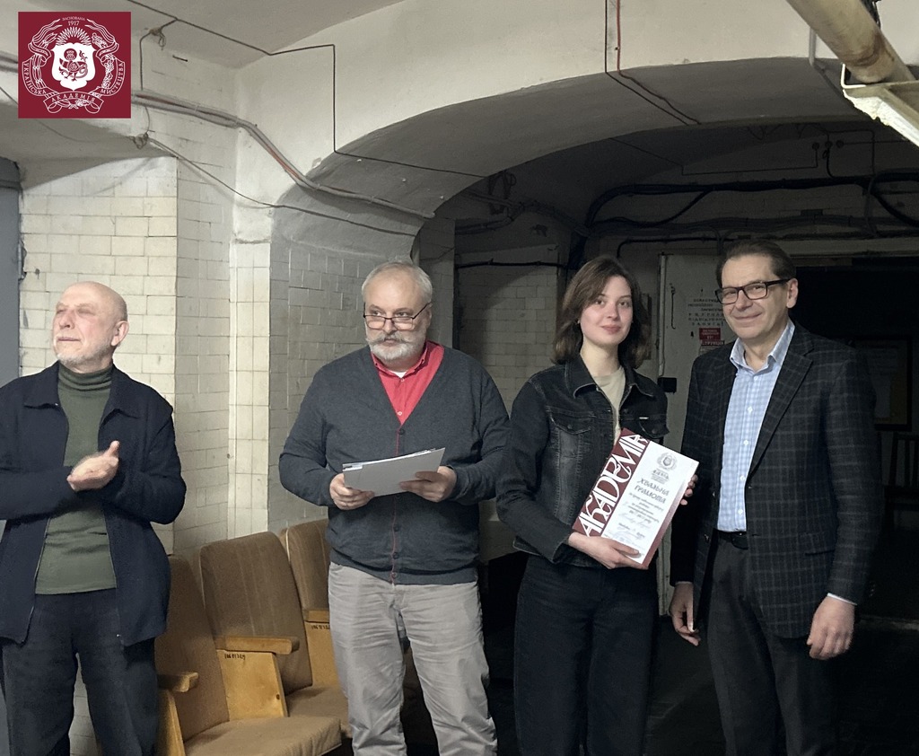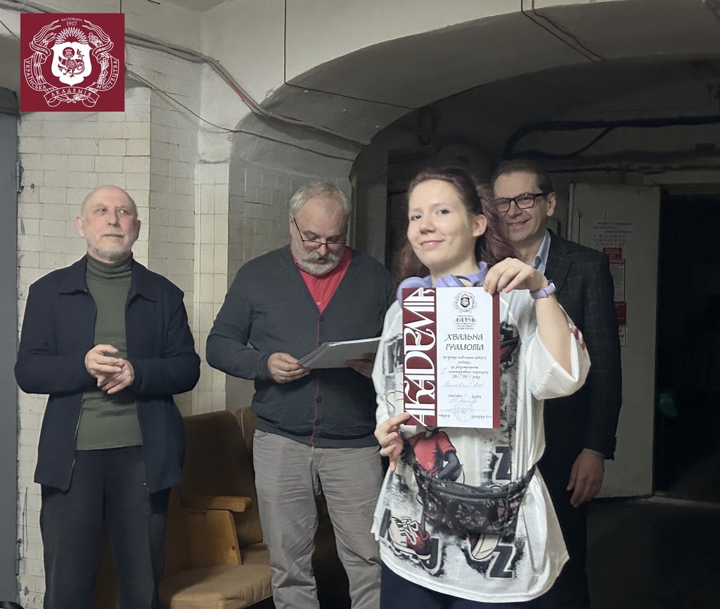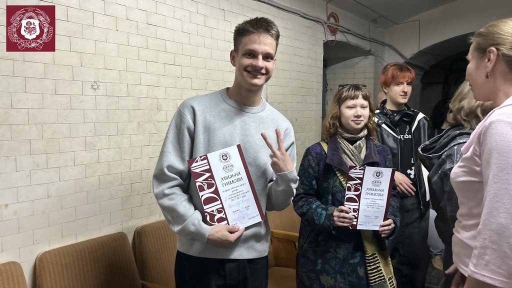 У безпечному просторі укриття були відзначені найкращі роботи студентів за результатами першого семестру 2025–2026 навчального року. Вручення дипломів і відзнак відбулося за участі керівництва академії та викладачів, які наголосили на важливості безперервності творчого розвитку навіть у складних умовах сьогодення.