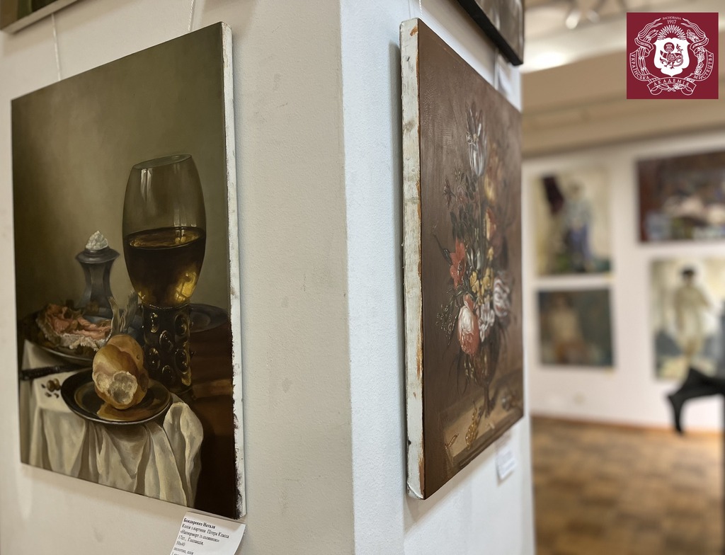 2 курс – Софія Боровик. «Натюрморт з годинником». Копія з твору Абрагама ван Бейєрена, XVII ст., Голландія. П., о., 40×50 (керівник – викл. Є.П. Деримука)