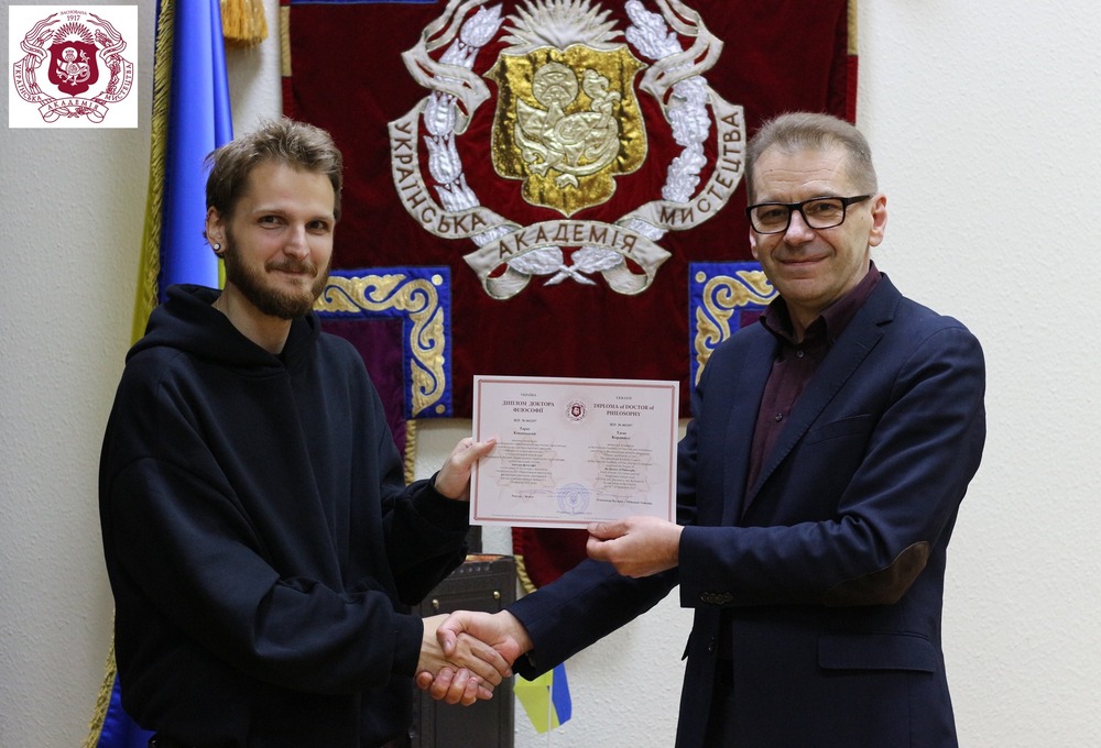 8 жовтня 2025 року ректор НАОМА, професор Олександр Цугорка привітав випускників наукової аспірантури НАОМА Тараса Копанського та Юрія Копанського з успішним захистом на здобуття ступеня доктора філософії, та урочисто вручив дипломи доктора філософії за спеціальністю 023 «Образотворче мистецтво, декоративне мистецтво, реставрації» галузі знань 02 Культура і мистецтво.