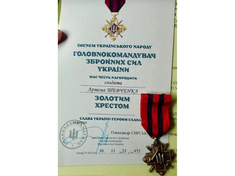 Національна академія образотворчого мистецтва і архітектури з глибокою шаною та гордістю вітає випускника факультету архітектури Артема Шевченка з почесною нагородою — «Золотим Хрестом» — за мужність, відвагу та самовіддане служіння Україні.