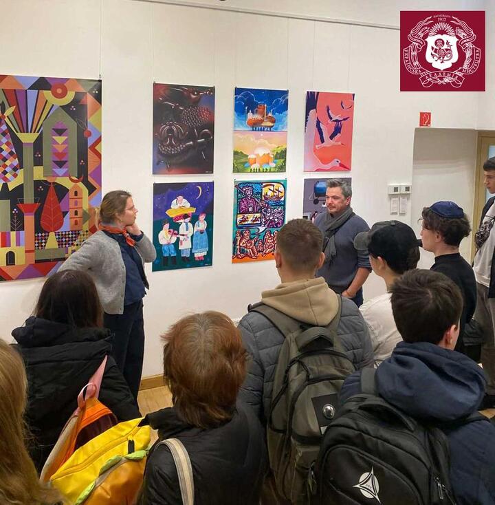 У межах кураторських екскурсій Олег Грищенко представив досвід розвитку сучасної ілюстрації у НАОМА та окреслив роль ілюстрації в культурному спротиві під час російської повномасштабної агресії. Особливо значущою стала зустріч з українськими підлітками, які нині перебувають в Угорщині й розглядають можливість продовження мистецької освіти в Україні. Для відвідувачів виставки, студентів CEU та представників української громади було проведено практичні заняття, де на прикладі робіт українських ілюстраторів демонструвалися принципи створення плакатної ілюстрації, композиційні рішення та техніки виконання.
