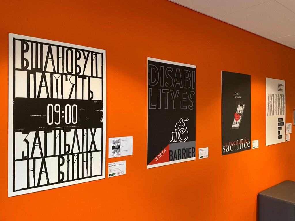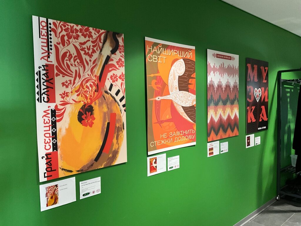 На виставці представлено 28 плакатів, створених студентами кафедри дизайну у 2025 році під керівництвом старших викладачок кафедри Олени Батенко та Світлани Кошкіної. Експозиція є продовженням виставкового проєкту “Valon juuret” (Корені світла), що проходив в галереї Mehiläinen з 12.01 по 27.02.2026.