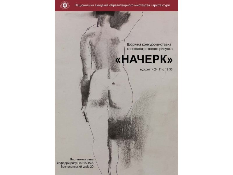 24 листопада 2025 року у виставковому просторі кафедри рисунка Національної академії образотворчого мистецтва і архітектури відкрито щорічну конкурс-виставку короткострокового рисунку «Начерк».