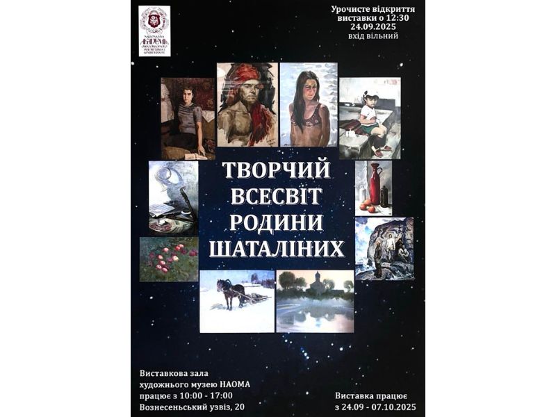 24 вересня 2025 року о 12:30 у виставковому просторі Художнього музею НАОМА відкриється виставка «Творчий всесвіт родини Шаталіних».