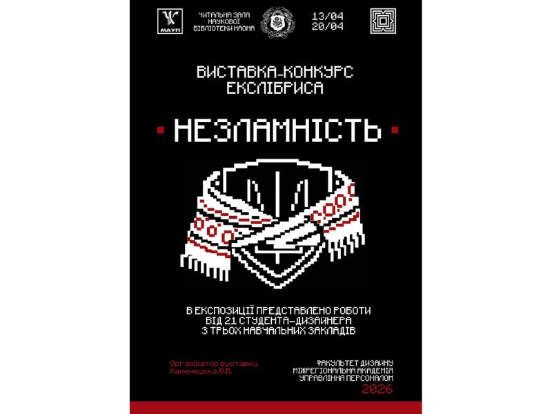 У березні 2026 року студенти-дизайнери трьох київських навчальних закладів — кафедри дизайну МАУП, кафедри дизайну НАОМА та кафедри дизайну ФК КНУТД — взяли участь у конкурсі книжкових знаків (екслібрисів) на тему «НЕЗЛАМНІСТЬ».
