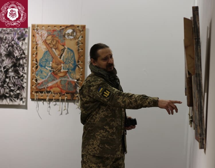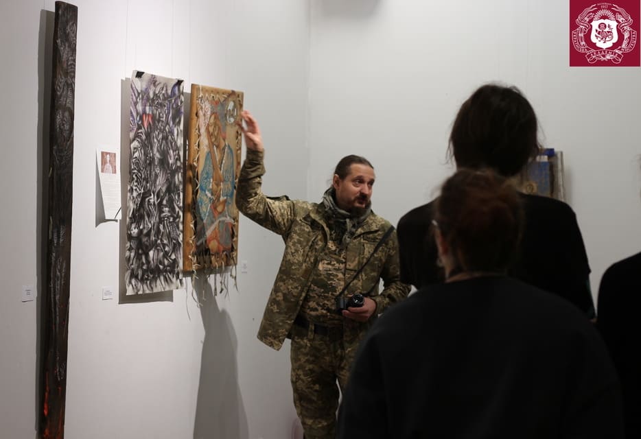 09 грудня 2025 року в Художньому музеї НАОМА відбувся Artist Talk з художником, випускником Академії та захисником України Сергієм Герасименком. Подія стала важливою складовою масштабного виставкового проєкту «Військові ікони. Відроджені з попелу», який триває в НАОМА з 4 до 17 грудня 2025 року.