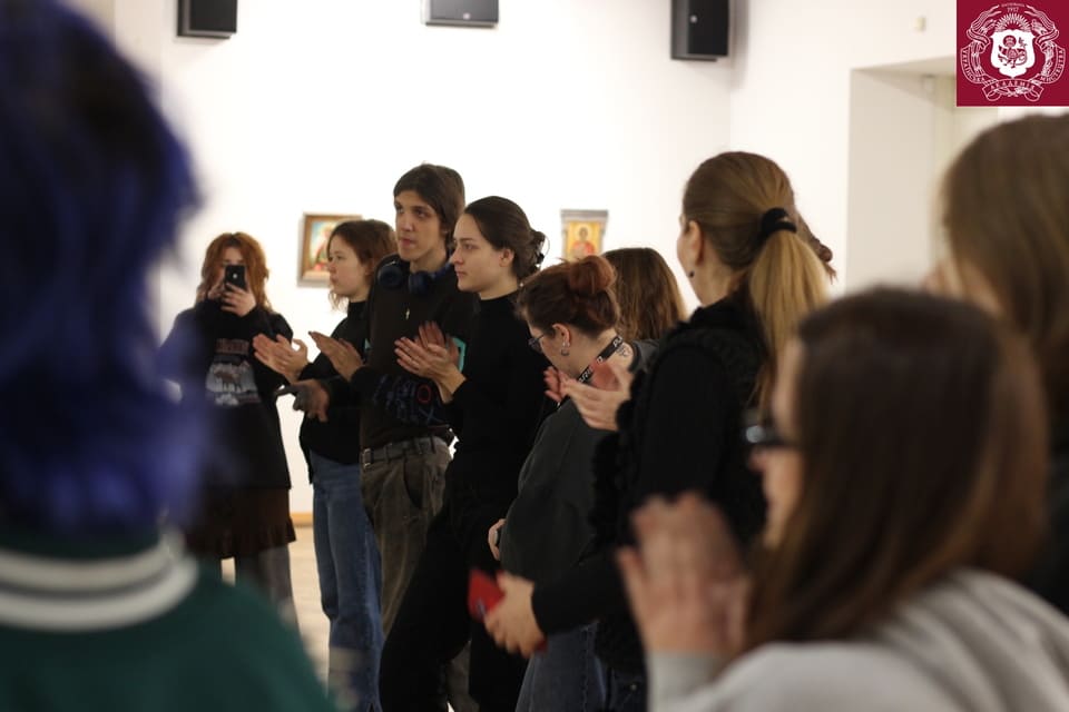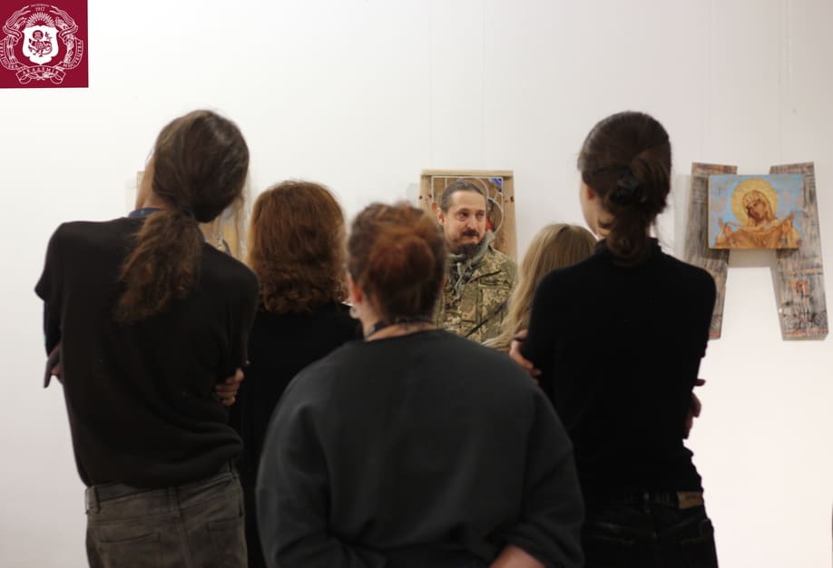 Під час зустрічі митець представив власний шлях у мистецтві — від навчання в «Майстерні живопису та храмової культури Миколи Стороженка» до формування виразного авторського стилю, у якому поєднано традиції іконопису, досвід служби на фронті та сучасну художню мову.