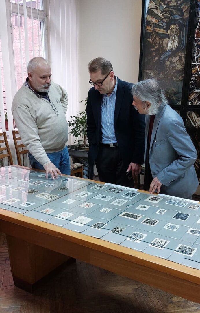 З вітальним словом виступив ректор нашої академії Олександр Петрович Цугорка. Він наголосив на творчому та духовному єднанні напрямів у екслібрисах, представлених на виставці.