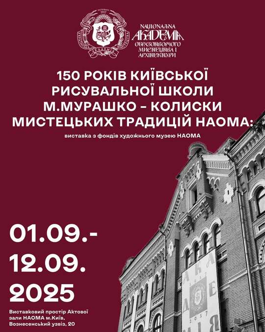 Зокрема, з нагоди 150-річчя Київської рисувальної школи М. Мурашко – осередку, з якого почалася історія НАОМА, у вересні в Академії тривала виставка «150 років Київської рисувальної школи М. Мурашко – колиски мистецьких традицій наома». Експозиція виставки презентувала хронологічний діалог між різними поколіннями видатних художників-педагогів та студентів НАОМА, серед яких: Яблонська Т. Н., Кличко Ф. Ф., Трохименко К. Д., Штильман І. Н., Шовкуненко О. О., Григор’єв С. О., Пузирков В. Г., Голембієвська Т. М., Лопухов О. М., Гурін В. І., Чеканюк В. А., Стороженко М. А., Забашта В. І., Цугорка О. П. Також, в межах заходу було відкрито виставку однієї роботи Олександра Мурашка – твору «Портрет Берти Василівни Єнні» (1912) у просторі галереї «Centre НАОМА».