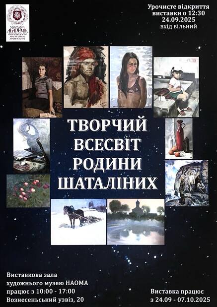 Також, в Художньому музеї НАОМА відкрилася виставка кращих робіт студентів за результатами другого семестру навчального року 2024/2025 рр.; виставку «Творчий всесвіт родини Шаталіних», приурочену до майбутнього, у 2026 році, 100-річчя Віктора Васильовича Шаталіна — художника-живописця, випускника (1947-1953) та викладача (1966-2003) Київського художнього інституту (нині НАОМА), та 70-річчя (2024) дочки художника Наталії Вікторівни Шаталіної — живописця-педагога, випускниці Київського державного художнього інституту (1978), учениці професора НАОМА В.Гуріна. У жовтні 2025 р. в Художньому музеї НАОМА відбулася виставка Євгена Піскунова — живописця, педагога, старшого викладача кафедри живопису і композиції НАОМА. У листопаді 2025 р. в Художньому музеї проходила виставка викладача кафедри сценографії і мультимедіа факультету образотворчого мистецтва і реставрації, випускника НАОМА, Володимира Падуна «Nota bene» як своєрідні візуальні нотатки художника, який пройшов шлях митця і воїна. У грудні 2025 року в Художньому музеї НАОМА тривала іконографічна виставка випускника Академії (1996-2002, майстерня монументального живопису М.Стороженка) художника та захисника України – Сергія Герасименка.
