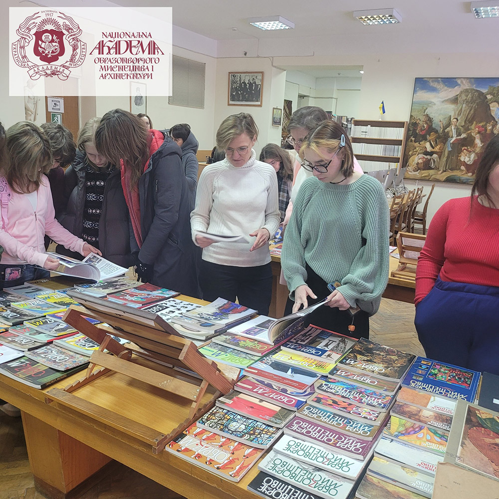 Науково-дослідну та методично-виставкову діяльність успішно реалізує і Наукова бібліотека НАОМА. Так, до 100-річчя від дня народження Віктора Зарецького співробітники бібліотеки підготували експозицію методичних матеріалів, які глибоко та ґрунтовно розкривають етапи формування та значущість творчого генія Зарецького для київської художньої школи. 20 лютого в бібліотеці відбулося відкриття виставки, присвяченої 90-річчю журналу «Образотворче мистецтво». Ідейним натхненником події став доцент кафедри теорії та історії мистецтва, кандидат мистецтвознавства, головний редактор часопису «Образотворче мистецтво», Володимир Петрашик, який нині боронить нашу країну, перебуваючи в лавах ЗСУ. З нагоди вшанування пам’яті та до 211 річниці від дня народження Тараса Шевченка, 10 березня бібліотека НАОМА підготувала тематичну виставку «Тарас Шевченко – художник з душею поета». Матеріали виставки презентували 36 видань різних років «Кобзаря» Тараса Шевченка з фондів Наукової бібліотеки НАОМА.